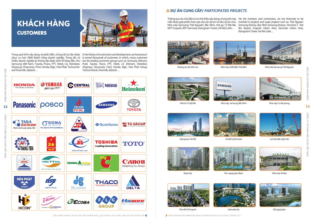 Hơn 20 năm hoạt động, chúng tôi đã và đang phục vụ nhiều khách hàng & dự án lớn: Vingroup, Samsung, Deawoo, LG, Vinfast, Yamaha, Toyota, Honda, Cotecons, Centralcons, Vietel, PVoil, Delta, Licogi, Hòa Phát, Lọc dầu Nghi Sơn, Posco...cùng hơn 10,000 khách hàng khác.